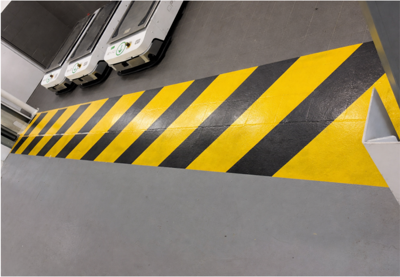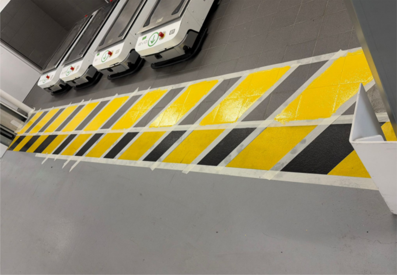 ✓ Pose de bandes de marquage au sol.